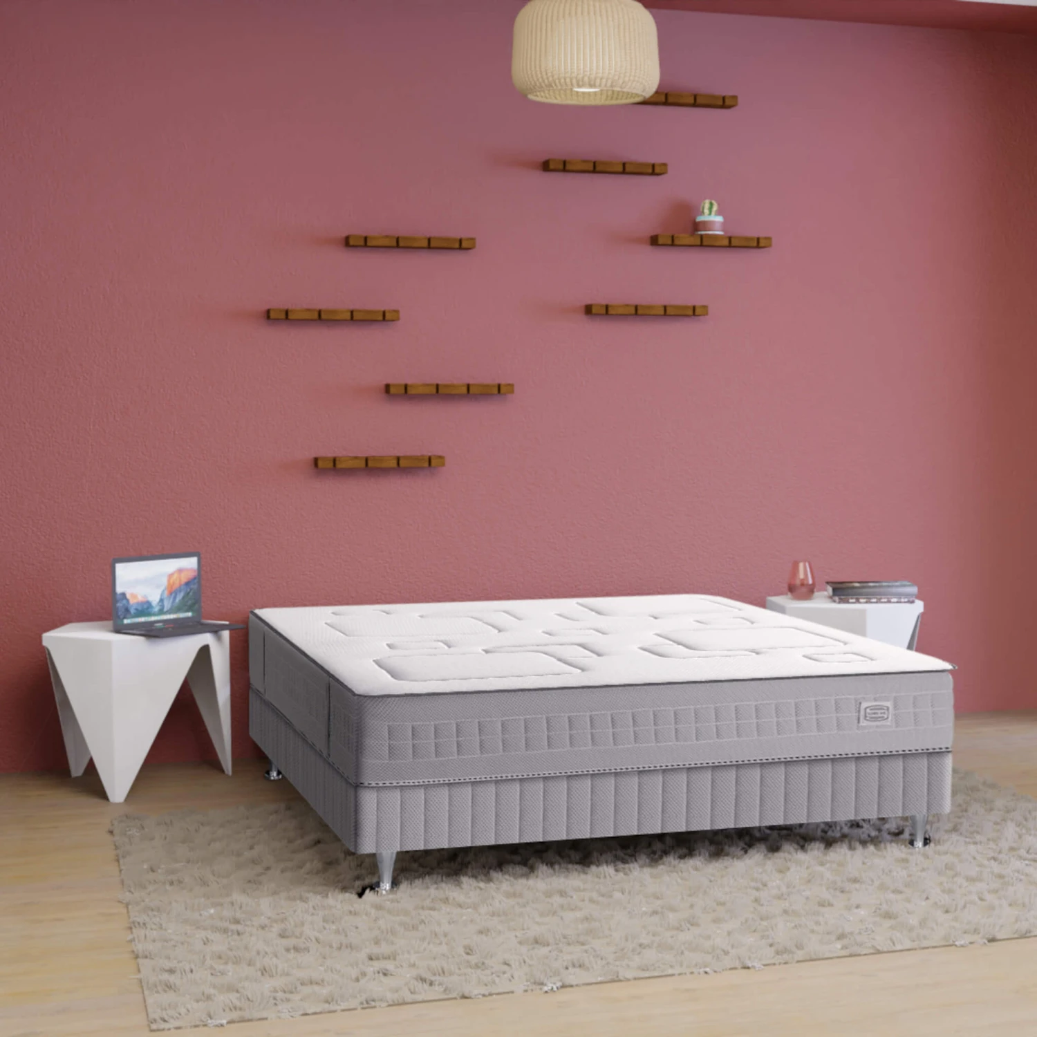 – Matelas Simmons à ressorts ensachés SW3 au soutien ferme et à l’accueil moelleux.