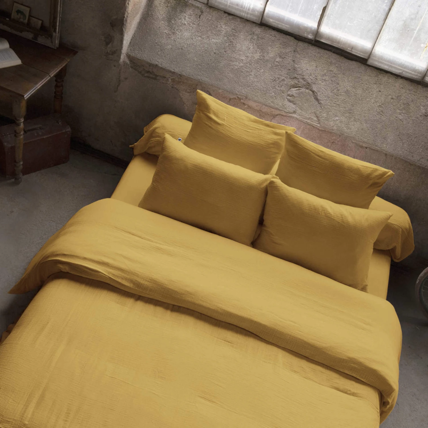 Housse de couette double gaze de coton jaune safran