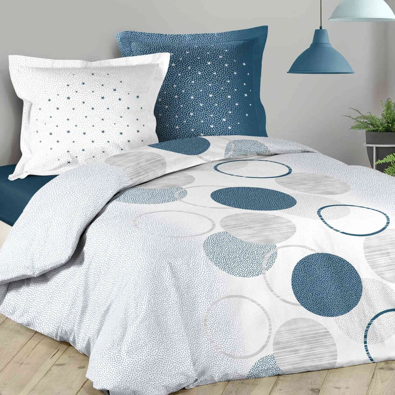 bleus, cette parure de lit vous plonge dans la galaxie pour