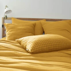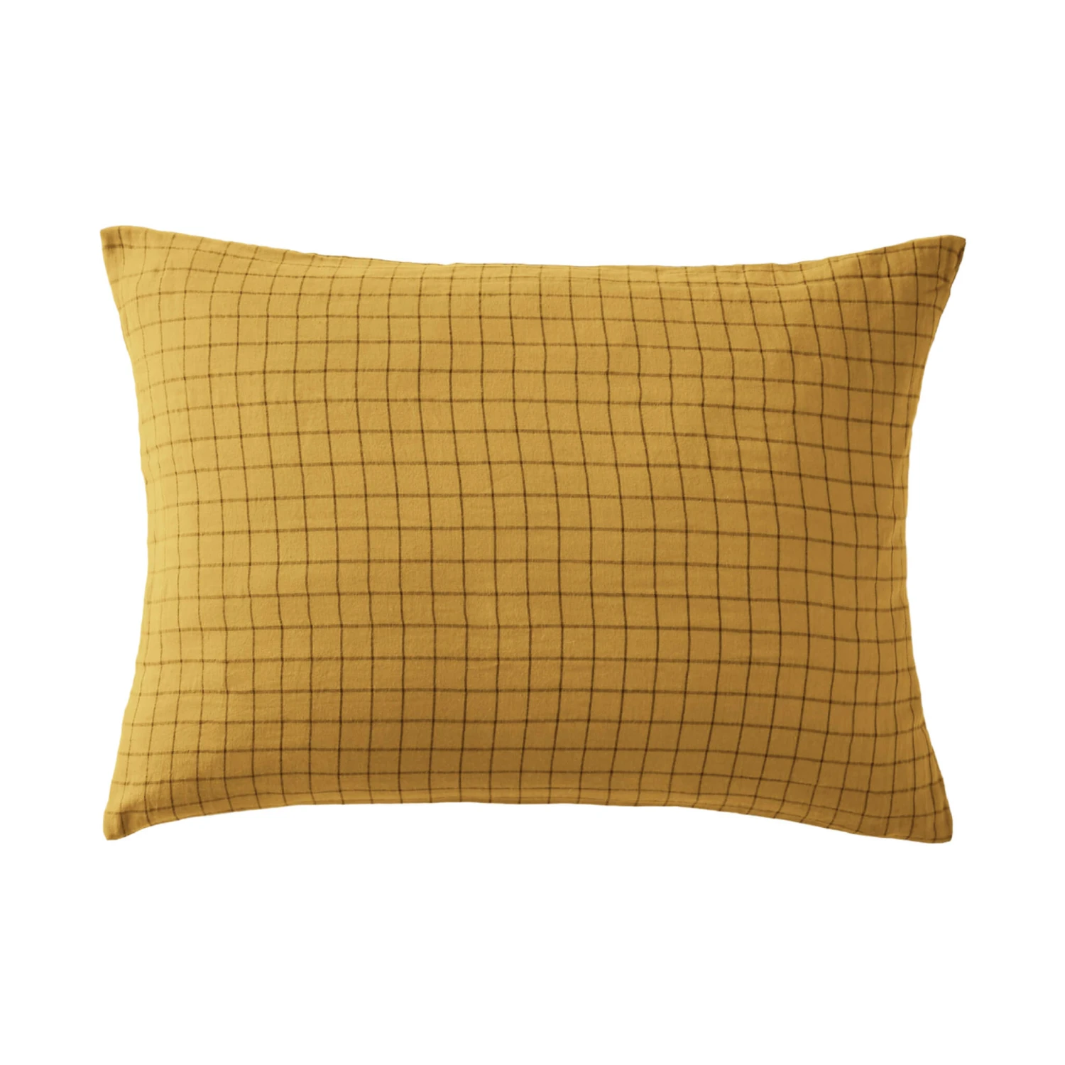 Taie d’oreiller à carreaux double gaze de coton jaune
